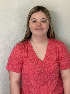 Abby lives with her parents and younger sister, Lily, who also has Down syndrome. She lives on a small farm in Ash Grove. Abby loves coloring her adult coloring books and creating special artwork as gifts for her siblings, nieces, and nephews. She enjoys shopping for clothes and shoes, vacations at the beach, and dining out. Every day, she preps her own meals, helps maintain the house, assists Lily with self-care, and looks after Lucy, the family dog. Abby is excited about starting Queen Abby Colors and working at Upside Down Mercantile so others can enjoy coloring as much as she does.